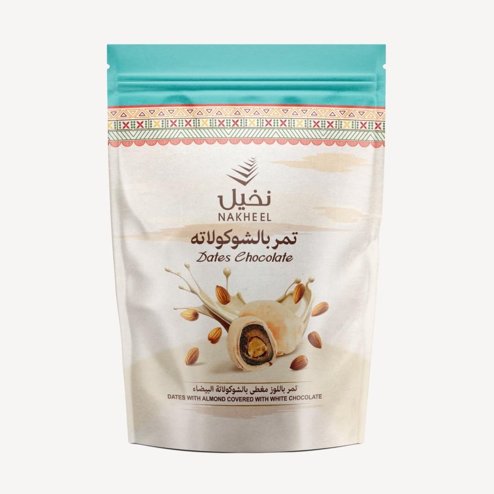 تمر باللوز و مغطى بالشوكولاتة البيضاء 100 جم