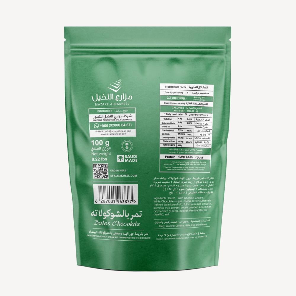 تمر محشي بكريمة جوز الهند و مغطى بالشوكولاتة البيضاء 100 جم